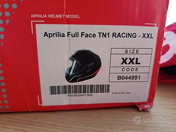 Casco Aprilia Full Face TN1 RACING Taglia XXL (63cm circonferenza). Usato solo per una prova in pista di 10 minuti. Completamente sfoderabile. Completo di scatola e portacasco originale.