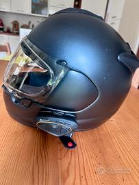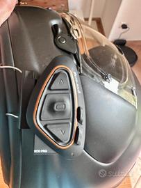 casco come nuovo, tg M, viene venduto montando una visiera fotocromatica, e la sua trasparente originale. monta inoltre sistema di comunicazione Midland, con microfono e auricolari interni. (secondo auricolare BTX1 PRO Midland disponibile con confezione originale, e accessori per l’installazione, a 80 euro in più). PS piccolo graffio sul retro del casco in basso a sx