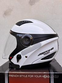 Vendo casco moto Astone DJ10 Graphic Exclusive Stripes, colore bianco/nero, taglia S (55–56 cm).