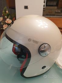 Casco bambino con visiera Helmo Milano di colore avorio ed imbottitura di colore rosso con disegni. Usato pochissimo. In ottimo stato.