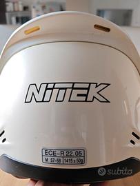 Casco integrale marca Nitek, colore bianco perla con visiera nera scura, Taglia M, 56-58 cm. 3923338040 Alex.