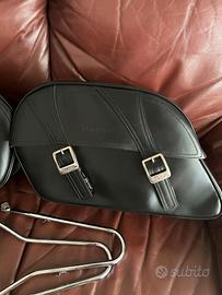 Set borse da sella TRIUMPH pelle nera in ottimo usate poco e tenute con cura. Inclusi supporti telai cromati anch'essi come nuovi e clip per fissaggio tutto originale, pronte per essere montate. -Capacità 13,8 litri ciascuna per 27,6 litri di spazio di stivaggio totale. -Fibbie in acciaio con chiusure rapide e logo Triumph BONNEVILLE T100 Efi e carburatori volendo possono adattarsi ad altri modelli come Bonneville america Incluse staffe supporti telai cromati LE STAFFE MONTANO SUI SEGUENTI MODELLI: Bonneville 790 (2001-2007), Scrambler 900 (2006-2015/16), Thruxton 900 (2004-2015/16), Bonneville 865/T100 (2005-2015/16), Bonneville SE cerchi in lega (2009-2015/16) da verificare se montano su bonneville t120 📦Spedizione Rapida e imballaggio accurato.