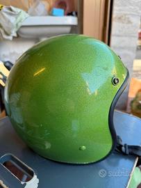 Vendo casco Biltwell colore verde metalflake/glitter, stile Harley/vintage/custom, acquistato nel 2009, con visiera trasparente a bottoni (snap) inclusa (vedi foto)