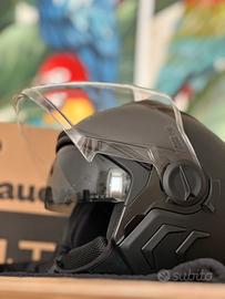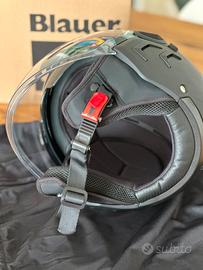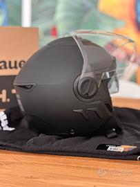 Vendo casco Blauer H.T. modello DJ01 colore nero opaco taglia S, completamente nuovo e mai utilizzato, completo di scatola originale, sacca protettiva ed etichette. Si tratta di un casco dal design moderno ed elegante, perfetto per uso urbano e per chi cerca uno stile minimale ma curato nei dettagli, tipico del marchio Blauer. La calotta è compatta e leggera, molto comoda anche per utilizzi prolungati, mentre gli interni imbottiti garantiscono comfort e vestibilità. Il casco è dotato di doppia visiera, caratteristica molto utile nella guida quotidiana: una visiera esterna lunga e trasparente che protegge completamente da vento e agenti esterni, e una visiera interna corta parasole, ideale durante il giorno per evitare abbagliamenti senza dover cambiare visiera. La chiusura è micrometrica, quindi pratica e sicura, e il sistema di ventilazione permette una buona aerazione durante l’utilizzo. Il casco è in condizioni perfette, mai indossato, senza alcun segno o difetto. Ottima occasione per acquistare un prodotto di qualità, praticamente nuovo, ad un prezzo conveniente. Prezzo: 99€ Disponibile per spedizione.