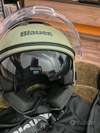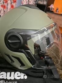 Vendo casco Blauer H.T. in ottime condizioni. Caratteristiche: Tipo: Jet / Open Face Colore: Verde militare opaco Taglia: L Visiera esterna trasparente panoramica Visiera interna fumé integrata ("Day Time Use Only") Ventilazione superiore Interno imbottito removibile Blauer H.T. Chiusura con sgancio rapido (micrometric/D-ring) Include sacca porta-casco originale Condizioni: Usato, ottime condizioni – nessun urto o caduta.