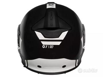 Il casco modulare si basa su un meccanismo a quattro snodi e può essere trasformato in un casco jet BMW in modo rapido e senza attrezzi. L'apertura della mentoniera si effettua con un bottone centrale.