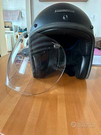 Casco aperto con visiera atraccabile con bottoni a pressione. Pearicamente nuovo. Misura M