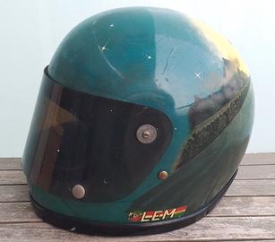 Raro casco vintage integrale anni '70 Boeri modello Indy (calotta prodotta da LEM), con bellissima personalizzazione raffigurante una Vespa targata Milano che va verso il tramonto. Il casco è quindi d'epoca, è stato usato e si presenta in buone condizioni generali, con qualche minore graffio e scarso segno d'uso come da foto. Interno originale ed abbastanza buono (ovviamente manca il vellutino che era incollato sul fondo ed è presente un leggero sfarinamento della gommapiuma), sottogola originale presente e funzionante. La taglia non è riportata, può essere attorno alla 60 senza nessun impegno in merito. Stupendo pezzo, eccellente per Cafè Racer, sia da collezione che da uso per raduni e similari.