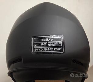 Casco Jet Caberg Riviera V4, taglia M, utilizzato un paio di volte, quindi come nuovo, visiera antigraffio e visierino parasole, interni come nuovi ma comunque igienizzati. Vendo per inutilizzo. Preferibile scambio a mano zona Torino nord