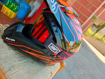 vendo casco Airoh in ottime condizioni colore nero/rosso taglia L inclusa maschera rossa marca 100% Vendo per cambio moto (da enduro a stradale)