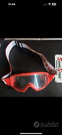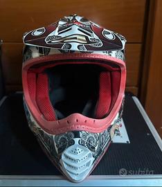 Casco da moto cross, colore rosso, buanco, grigio e nero. Taglia L e con mascherina Scott rosso.