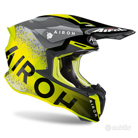 Casco cross AIROH TWIST 2.0 grafica BIT YELLOW GLOSS in policarbonato casco tutto sfoderabile vestibilità confortevole con chiusura ad'anello , presa aria mentoniera con spugnetta filtro interna frontino regolabile a tre viti.