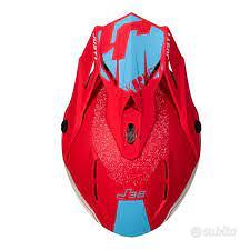 Casco cross in policarbonato della J1 modello J38 grafica KORNER BLU/RED OPACO tutto sfoderabile con chiusura ad'anello , frontino con tre viti regolabile in altezza presa aria mentoniera con spugnetta che fa da filtro.