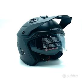 Il Casco Moto Crossover Dieffe DF711 disponibile in Argento Opaco e Nero Opaco è leggero, ventilato e super versatile grazie alla sua mentoniera removibile e al suo visierino interno parasole fumè a scomparsa.