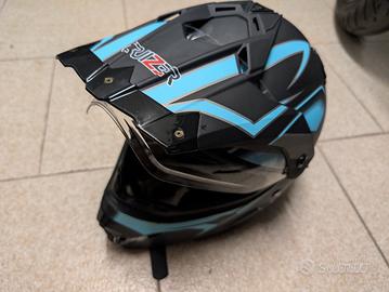 Casco tipo motocross con visiera integrata (no occhiali) stile motocross.