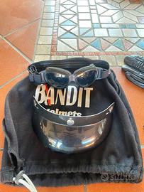 Casco con in dotazione occhiali e due visiere parasole nero lucide + guanti in pelle protettiva