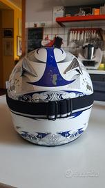 Vendo casco + mascherina causa passaggio a casco integrale, casco usato ma in buone condizioni, piccola crepa sulla aletta aerodinamica color argento posteriore dx.