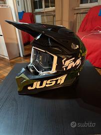 Vendo casco da Moto Cross Just1 J39 KINETIC Camo Verde Militare Nero Opaco con maschera bianca Fm Racing SPACE 2 ROLL OFF