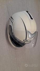 Casco da moto HJC in buone condizioni. Casco semi-integrato bianco con delle strisce nere.
