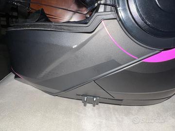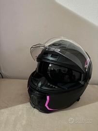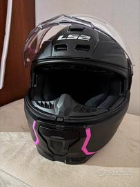 Casco da moto modulare LS2 Helmets colore nero opaco e rosa, utilizzato pochissimo e praticamente come nuovo, unico difetto piccolo graffietto su lato destro. Dotato di occhiali oscurati integrati facilmente regolabili tramite levetta laterale. Custodia in tessuto originale, scatola e accessori in dotazione all'interno della confezione.