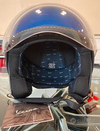 Casco demi-jet in ABS. Visiera trasparente 2mm contrattamento antigraffio e viti in alluminio. Bordo in eco-pelle cucito sullacalotta. Logo Vespa intagliato sul retro della calotta. Chiusura micrometricadel laccio antiscalzamento. Vestibilità migliorata: guanciali più avvolgentiper un maggior comfort. Interni personalizzati con logo Vespa in tessutoanallergico e traspirante. Estraibili e lavabili. Prodotto in Italia.