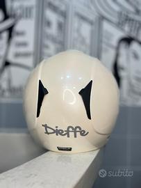 Casco dieffe con visiera lunga esterna trasparente e presa d’aria.