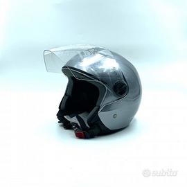 Casco con visiera esterna lunga trasparente e presa d’aria.