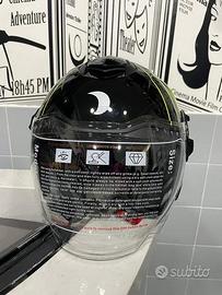 Casco con prese d'aris e doppia visiera: visierino solare a scomparsa fumè e visiera lunga esterna trasparente.Calotta in policarbonato, interni sfoderabili e anallergici e paraorecchie removibili.Disponibile in tutte le taglie.Puoi acquistare sul nostro sito web: www.oltreilricambio.com o contattare al numero whatsapp: 3756233640Ci troviamo a Napoli, in Via Alessandro Volta 8/10, zona Via Marina nei pressi del parcheggio Brin. 80142