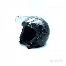 Casco con visiera esterna lunga trasparente e presa d’aria.
