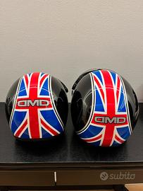 Vendo in coppia o singolarmente casco DMD, taglIa S o L, aperto, con visiera staccabile, nuovo, con disegno bandiera inglese. I caschi sono forniti nella sacca originale DMD. Costo coppia di caschi 170. Costo casco singolo 90. Consegna a mano a Bergamo.