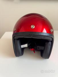 Vendo casco jet da donna in splendido rosso glitter, taglia S – pezzo unico personalizzato, impossibile da trovare altrove.