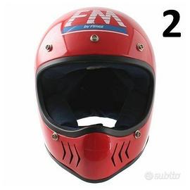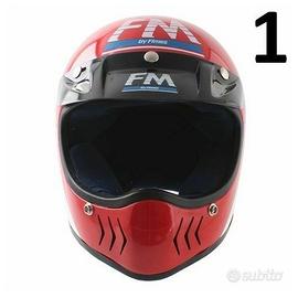 (R.7162) Vendo casco nuovo originale vintage FM Trophy Helmets by Fimez colore rosso e bianco con attacco a tre bottoni e tessuto rivestimento interno senza spugnetta adesiva perchè sgretolata a causa del tempo, omologato , il prezzo si intende per singolo pezzo , disponibili più modelli :