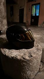 Finitura in carbonio a vista con visiera specchiata color oro, ideale per chi cerca stile e prestazioni.