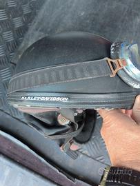 Casco Harley Davidson half helmet, nelle condizioni come da foto. Trovato in cantina, non sono un esperto del genere e quindi non o se è originale o meno Per collezionismo o ristrutturazione. Accetto proposte sensate