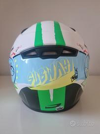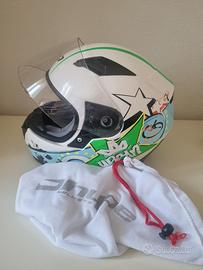 Casco integrale Hipe bambino tg.52 omologato per circolazione su strada. Normali piccoli segni di usura. 3 prese d'aria, 2 superiori ed 1 sulla mentoniera. Interni integri, estraibili e lavabili. Custodia per lo stoccaggio.