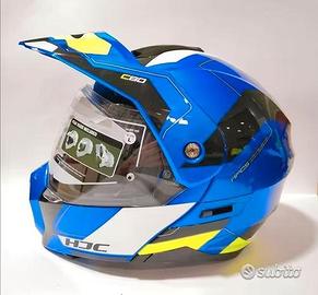 Casco modulare realizzato in policarbonato, comodo e leggero, ideale ogni giorno, perfetto sia in strada che nel fuoristrada, dotato di ampia visiera chiara, lente antiappannamento Pinlock inclusa nella confezione e occhialino parasole integrato, e pratico frontino parasole.