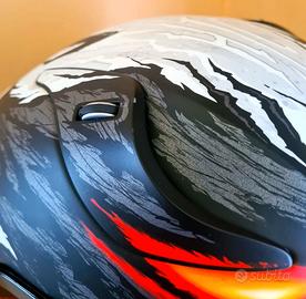 Come da titolo casco Hjc Rpha 11 Anti Venom della Marvel, taglia S Molto bello con la sua finitura semi opaca e glitterata. Casco utilizzato 5-6 volte, sempre con sotto casco per evitare sudore e anche per praticità nell'indossarlo. Completo di tutto il corredo originale, visiera trasparente, borsa da viaggio, pinlock, manuali etc. Purtroppo presenta un paio di segni sulla bocchetta aria dx, visibile in terza foto, per il resto praticamente come nuovo. Se siete curiosi della taglia potete provare un RPHA 11-12 in qualunque centro di abbigliamento. Possibilità di spedizione. In caso di vendita a distanza l'unica modalità che accetto è pagamento anticipato con bonifico bancario e successiva spedizione con Sda tracciabile.