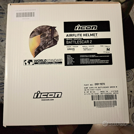 Vendo causa cambio genere moto casco integrale della marca Americana Icon modello Airflite Battlescar 2 taglia M praticamente nuovo, solo tolto dalla scatola e provato, completo di visiera specchiata colore oro e una trasparente.