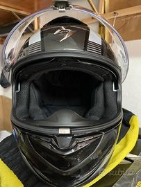 Casco in fibra Scorpion Exo-1400 Air come nuovo, taglia S. Indossato sempre con sottocasco. Pinlock, sistema gonfiaggio guanciali, visiera scura a scomparsa. No graffi no cadute. Usato poco avendo altri caschi. Con sacca, manuale e scatola originale. Prezzo trattabile.