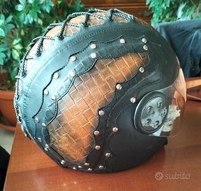 casco rivestito a mano in vera pelle da artigiani del mestiere, omologato,taglia XL, usato rarissime volte,circa 2 /3 volte, praticamente nuovo,lo vendo perché ho venduto la moto, ideale per possessori di moto customer. prezzo 90 euro, pagato molto di più. per ulteriori informazioni chiamatemi al numero 3204881275 bruno