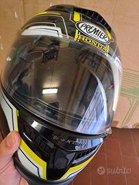 materiale carbonio colore giallo bianco nero lucido . L' adesivo con scritta Honda é rimuovibile. con interfono Bluetooth interno e lenti oscurate per il sole.