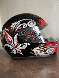 Casco integrale AGV taglia L, usato, presenta piccoli segni di usura , dispone di due visiere, una trasparente montata e una scura con pinloock adesivo montato sulla visiera, gli interni sono buoni, ha presa d’aria nel mento e due sulla fronte e dietro.