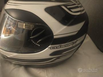 Casco integrale per moto. calotta realizzata in termoplastica ABS.D. dotato di sistema te doppia visiera ("Double Visor Tech") che include una visiera esterna trasparente antigraffio e un visierino parasole interno a scomparsa. Presa d'aria superiore regolabile per ottimizzare il flusso d'aria interno.Questo modello ha ottenuto una valutazione di5 stellenei test SHARP. Fodera interna rimovibile e lavabile per una maggiore igiene.