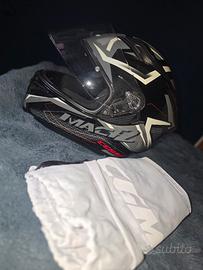 Casco integrale CGM, grafica sportiva in nero, grigio e bianco, calotta in HPT (High Performance Terpolymer)