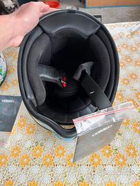 Bellissimo casco integrale dal puro stile retrò anni '70, prodotto dal marchio italiano d'eccellenza DMD. Realizzato con calotta in Carbonio Kevlar, è estremamente leggero (circa 1100g) e resistente.