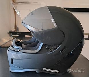 Vendo casco usato 4 volte, praticamente nuovo, colore nero opaco taglia S. Dotato di mascherina parasole a scomparsa, visiera trasparente, paranaso, chiusura a doppio anello. Veramente bello e "aggressivo".