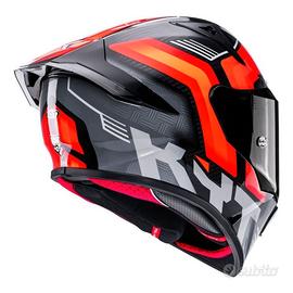 Vanta un’aerodinamica migliorata grazie a oltre tre anni di test in galleria del vento e a numerosi test in strada e in pista per ottimizzare il comportamento fluidodinamico in varie posizioni di guida, rettilineo, staccata e curva per regalare al motociclista il massimo comfort. Campo visivo verticale e periferico rispettivamente 90 e 210 gradi, tessuti traspiranti “Hydrocool Textile”, meccanismo visiera con sistema di rototraslazione, meccanismo di blocco della visiera “Racing Lock System” in lega metallica il più severo utilizzato dai piloti della MotoGP. R1R il casco ideale per la strada e per la pista. La calotta è realizzata in fibra TRICOMPOSITE, un nuovo composito che permette di ottenere una calotta più leggera ma allo stesso tempo più protettiva. Il nuovo composito è una miscela di fibra di carbonio, fibre aramidiche e fibra di vetro con diversi carichi di peso/rottura che assicurano una calotta leggera e molto più resistente agli urti. R1R è prodotto in tre diverse calotte: S M e L. La calotta interna in polistirene è realizzata in tre taglie (S M e L) per ottenere una migliore ergonomia ed è studiata con densità variabili. Questa caratteristica permette un assorbimento graduale e progressivo dell’energia prodotta dall’impatto, anche se la maggior parte dell’energia creata dall’impatto viene assorbita dalla calotta esterna, grazie alla sua deformazione, il ruolo del polistirene è fondamentale per l’assorbimento dell’energia residua. Una diversa densità del polistirene nelle diverse zone di impatto permette di ottimizzare le prestazioni meccaniche della calotta, garantendo il massimo livello di sicurezza. La visiera in policarbonato a iniezione antigraffio, a spessore variabile, in classe ottica 1 è facile da rimuovere grazie ad un sistema che non richiede l’utilizzo di alcun attrezzo. Il meccanismo con sistema di rototraslazione conferisce maggiore solidità in chiusura. La visiera è inoltre dotata di un meccanismo di blocco “Racing Lock System” in lega me