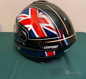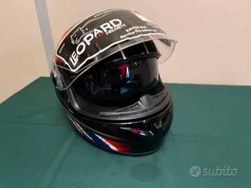Casco integrale Leopard Nuovo mai indossato e quindi perfetto senza neanche il minimo graffio, ancora profuma di nuovo. La taglia è la M. (57-58cm) omologazione (ECE 22-05) questa omologazione è ancora valida tranquillamente per andare su tutte le strade tranquillamente. Possiede la visiera principale trasparente, e la visiera parasole. Ci sono due punti di reazione uno al centro del Casco verso la fronte e uno sul muso. È presente un altro filtro per l’aria e tutte le istruzioni più la scatola ea sacca di stoffa per proteggere il casco.