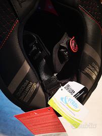 Casco integrale leggero e confortevole, con occhialino parasole a scomparsa, lente pinlock inclusa, ottimo sistema di ventilazione e pratica chiusura a sgancio rapido.