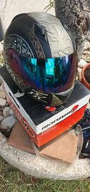 Casco Marushin tiger e guanti per moto. Tutto con scatole originali. Il casco ha una doppia visiera, una trasparente ed una a specchio. Utilizzato poco vendo in buono stato.